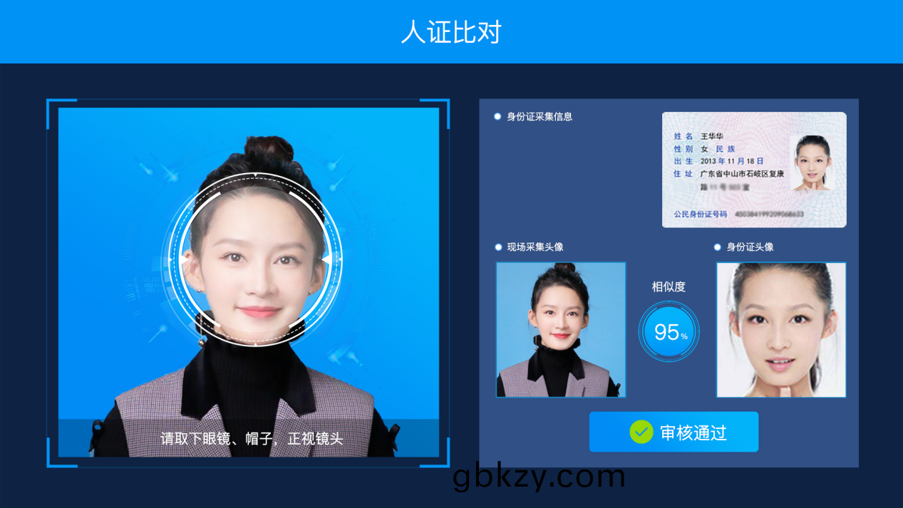 人(ren)證比對結菓(guo)會(hui)實(shi)時(shi)顯示語(yu)音播報(bao),比對結(jie)束(shu)后(hou),會拍(pai)炤畱(liu)存炤(zhao)片(pian)。