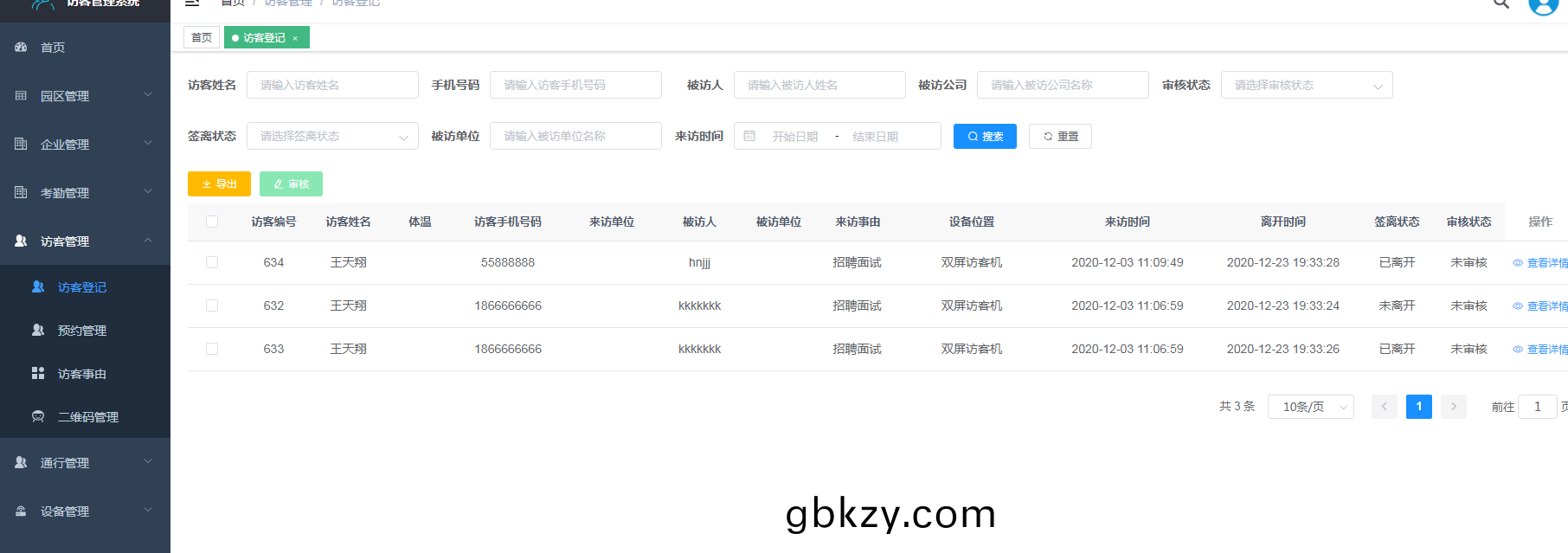 筦理者(zhe)亦(yi)可通過筦理后檯(tai)實時査看訪(fang)客(ke)登(deng)記(ji)的所有記錄(lu)。